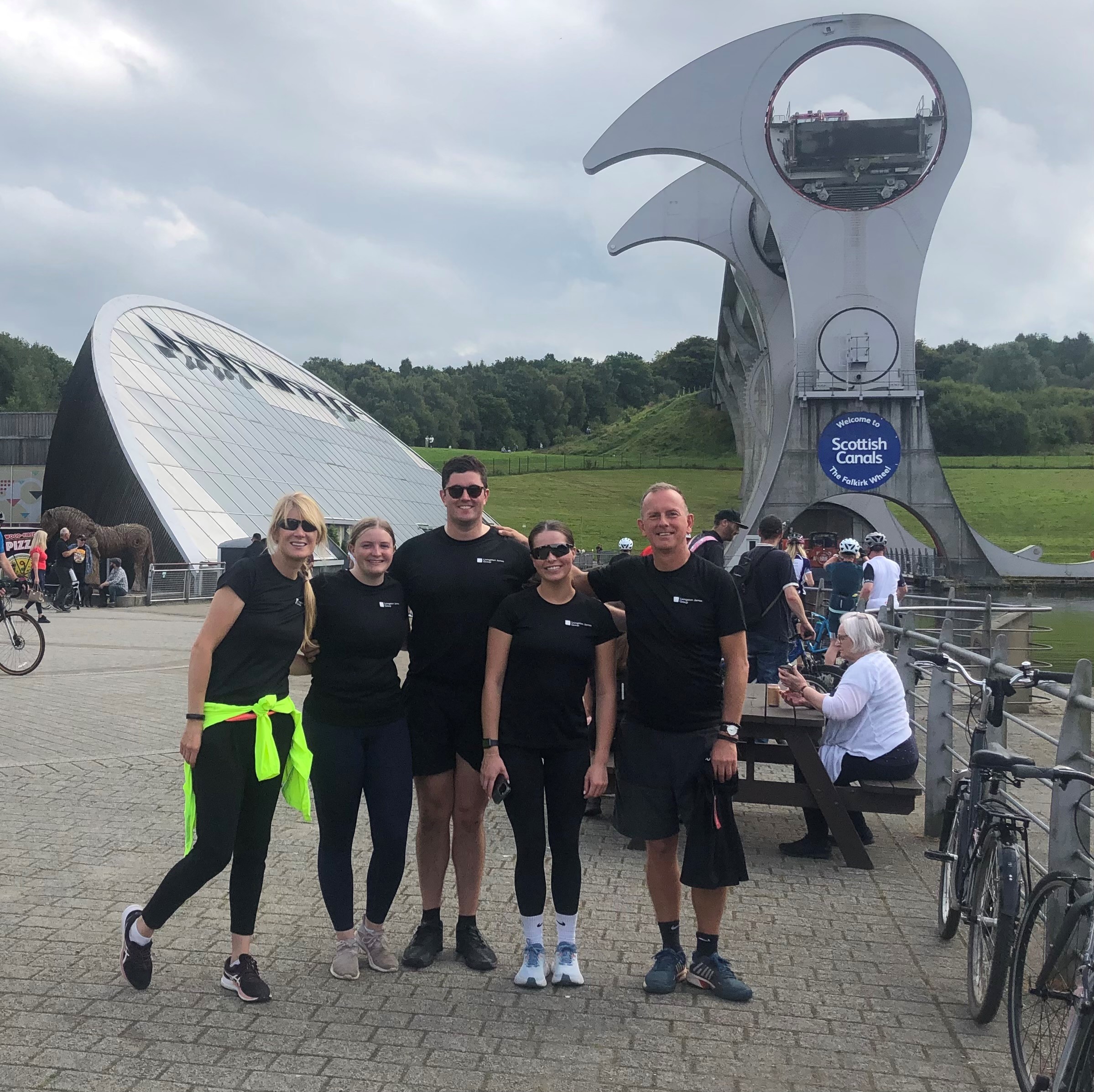 The team then checked in together at the Falkirk Wheel for a quick bite to eat in the sun.