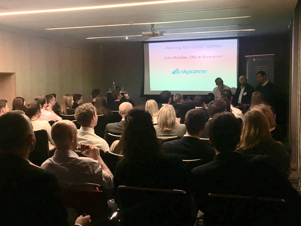 On 9th November, Rutherford Cross hosted the 10th event in its ‘Planning Your Career Journey’ series, welcoming speakers from Baillie Gifford, EY, and Skyscanner. Whilst all three of our speakers began their careers in the Big 4, each has subsequently pursued different paths, resulting in a variety of useful tips and pointers for the recently qualified audience in attendance.